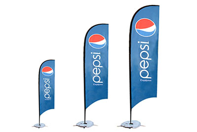 - opsætning af grafik og tryk af 3 stk. 85 x 220 cm Strand/beach flag med jordspyd.